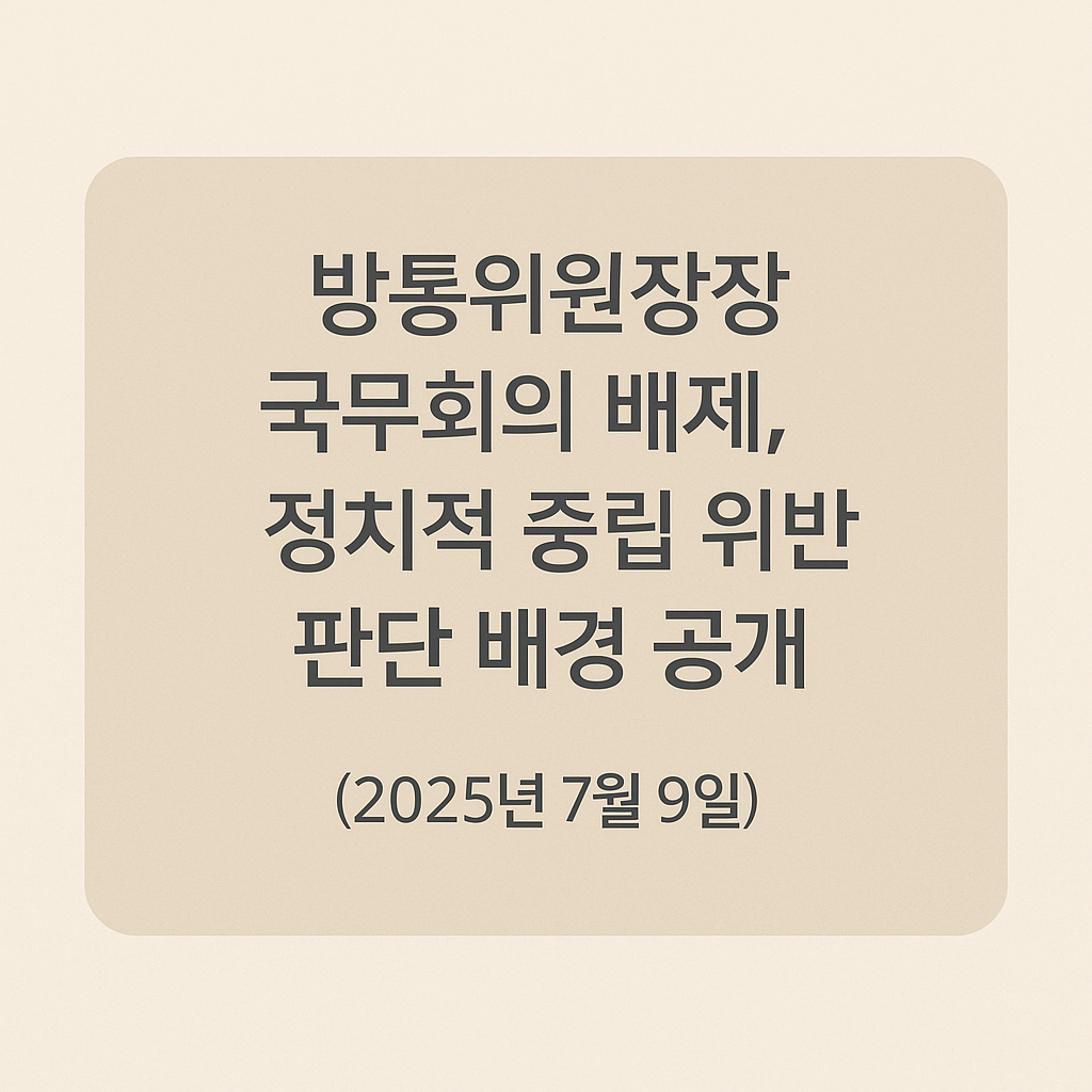 방통위원장 국무회의 배제, 정치적 중립 위반 판단 배경 공개 (2025년 7월 9일)
