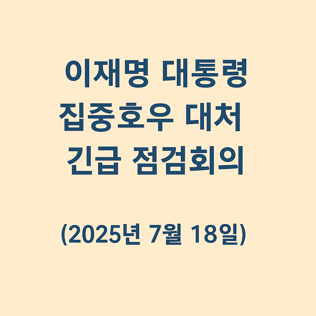 [대통령 브리핑] 이재명 대통령, 집중호우 대처 긴급 점검회의 개최 (2025년 7월 18일) 📌 회의 개요2025년 7월 18일 오전, 이재명 대통령은 서울 중구 세종대로에 위치한 중앙재난안전상황실 서울상황센터를 방문해 ‘집중호우 대처상황 긴급 점검회의’를 주재했습니다. 이번 회의는 최근 전국적으로 쏟아진 집중호우로 인해 발생한 각종 피해에 대한 정부의 대응 태세를 점검하고, 후속 조치를 논의하기 위한 자리였습니다.☔ 주요 회의 내용이날 회의에서 이재명 대통령은 국가의 가장 중요한 책무는 국민의 생명과 안전을 지키는 일임을 재차 강조하며, 사고 예방과 신속 대응을 위해 모든 자원과 행정력을 아끼지 말아야 한다고 밝혔습니다. 특히 “과하다 싶을 정도로 예방 중심의 대응이 필요하다”는 점을 강하게 주문..